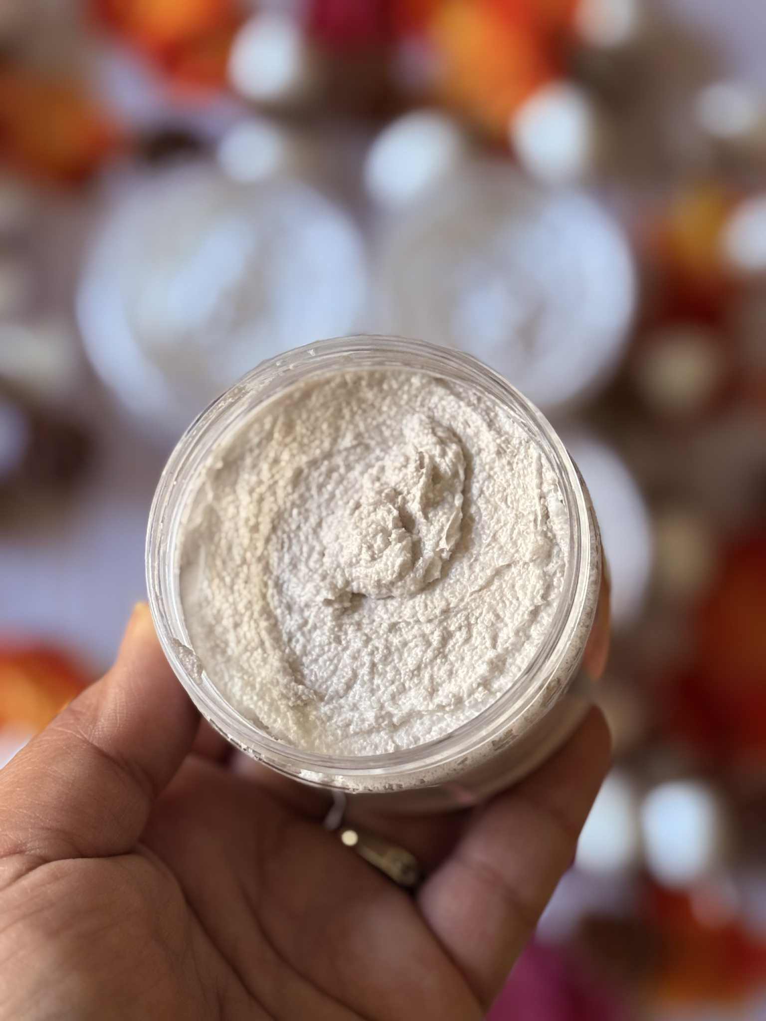 Creamy vanilla swirls with warm, woody sandalwood to create a scent that feels like slipping into your favorite sweater on a crisp fall day. Our sugar scrubs bring a fresh new experience to skin exfoliation as it foams when you add water and scrub away. Then wash off to reveal smooth and silky skin.